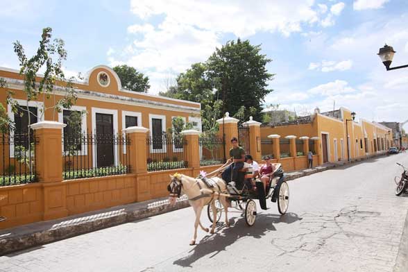 Izamal est le plus ancien village de la péninsule du Yucatan. En langue maya, Izamal devient Itzamatul ou “rosée qui descend du ciel”. Cet important carrefour commercial donna naissance à 7 pyramides mayas, l’une d’elles a servi de base aux Espagnols pour la construction du couvent San Antonio de Padua. Vous “tomberez en amour” (expression québécoise que j’aime beaucoup) avec Izamal pour ses rues pavées, propres et pittoresques.